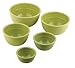 Mario Batali Measuring prep bowls in pesto. Versatile measuring/prep bowls. Measures 1/8 to 2 cups with half cup measurements indicated on all five sizes. Made of durable melamine. Bowls conveniently nest for storage. Read more