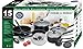15 piece cookware set includes 1 quart sauce pan with lid 2.5 quart sauce pan with lid 3 quart 9.5 inch deep saute pan with lid 9.5 inch ooen fry pan 4 quart dutch oven with lid serving spoon slotted spoon & ladle spatula & strainer & pasta fork Read more