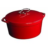 The "L" Series Dutch Oven is not only excellent for cooking, it is also the ideal vessel to serve meals in. Complimenting the stylish porcelain finish is the graceful "L" shaped stainless steel handle on the lid, providing a generous grip and perfect balance when handling while cooking or when cleaning. It can be used on all stove tops and in ovens, including induction, at temperatures below 500 degrees F. Not to be used in the microwave or on outdoor grills / campfires. Where the lid and pot meet, the visible black edge is a matte enamel undercoat more chip resistant than the primary colors. The white enamel cooking surface is FDA approved. Porcelain enamel eliminates the need to "season" cast iron, creating a non reactive surface perfect for all cooking techniques, as well as marinating, refrigerating or freezing. The corrosion resistant No. 304 stainless steel handle remain cool-touch while cooking on stovetop at moderate heat. 6 Qt, patriot red Read more