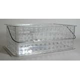 Sparkling clear tote basket! These great little totes are perfect for hundreds of uses! Wonderful in the office for supplies or the living room for DVDs or video games. Great in the bathroom for hair care and bath products. These baskets make ideal shower totes for students in dorm rooms. You'll find a use for these baskets in every room in the house - and they're stackable, too! Available in crystal clear. 1 Basket per order. . Read more
