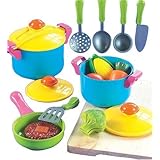 A great starter set of pretend cookware for kids, made of lightweight, easy-to-clean plastic in vivid colors. The 11-piece set includes a large stockpot with lid, small stockpot with lid, frying pan with lid, large spoon, knife, skimmer, spatula and ladle. Read more